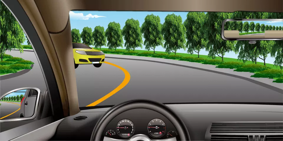 如图所示,在这种情况下要充分减速靠右行驶。