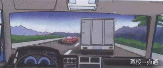如图所示:准备超过前方大型汽车时,驾驶人应确认安全后超越,预防对面来车躲避不及。