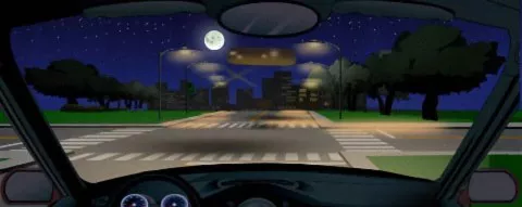 夜间行车遇到图中所示的交叉路口,不管有没有车辆和行人横过路口,都要开启远光灯提示。