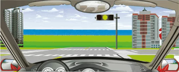 黄灯亮时,已越过停止线的车辆可以继续通行。车身在安全线里边的,请停车等待。