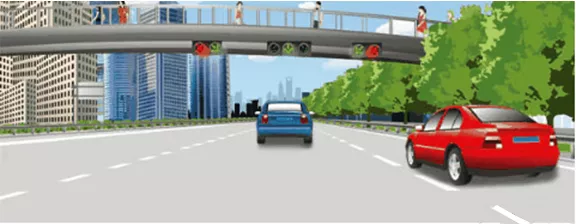 图中这辆红色小型客车选择的行车道是正确的。