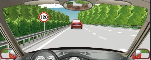 在图中所示的高速公路行车道跟随前车行驶时,最小的跟车距离不得少于100米。