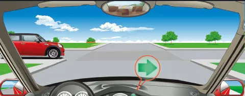 在一个没有信号灯的路口右转弯时,遇到图中所示的左侧路口有车辆直行,怎么做是正确的?