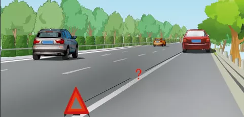 遇到图中所示的车辆无法继续行驶的情况时,怎样按规定放置危险警告标志?