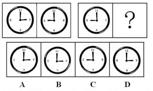 【解析】本题考查位置类。 观察题干,可得:图形组成相同,考虑位置类。在第一组图形中,将第一个图形沿竖轴翻转得到第二个图形。第二组图形遵循相同的规律,“?”处图形应该由第一个图形沿竖轴翻转得到。 故本题答案为A选项。 补充:A、B两项图形是不一样的(如下图所示)