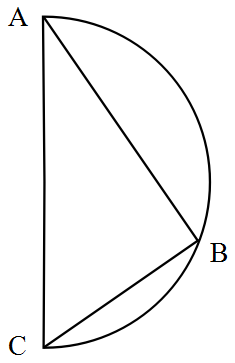 如下图所示,甲和乙在面积为54π的半圆形游泳池内游泳,他们分别从位置A和B同时出发,沿直线同时游到位置C。若甲的速度为乙的2倍,则原来甲、乙两人相距( )。