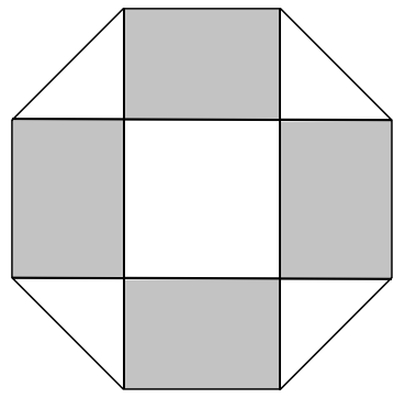 如下图所示,幼儿园老师用边长为10厘米的正八边形纸皮,裁去四个同样大小的等腰直角三角形,做成长方体包装盒。如果用该包装盒存放体积为8立方厘米的立方体积木(不得凸出包装盒外沿),那么,这个盒子最多可以放入多少块积木?( )