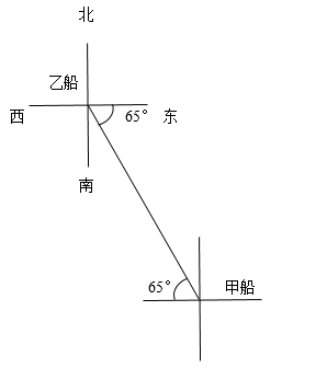 【解析】本题考查几何计算类。由题意可知甲乙两船位置如下图。则甲船在乙船的东南方向,排除C、D,角度为65度。故本题答案为B选项。
