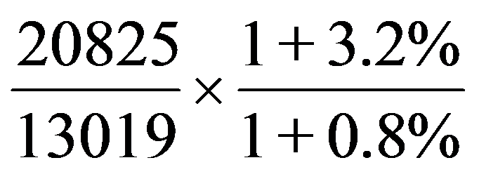 C项,倍数比值计算,由材料“2015年稻谷产量20825万吨,增产0.8%;小麦产量13019万吨,增产3.2%”可知,根据基期倍数公式得: