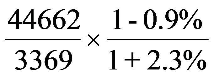 D项,倍数比值计算,由材料“2015年旱稻产量3369万吨,减产0.9%;秋粮产量44662万吨,增产2.3%”可知,根据基期倍数公式得:
