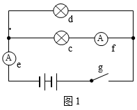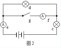 图1中,两个灯泡之间是并联的,电流表f测得的是通过灯泡c的电流,电流表e测得的是整个电路的总电流。