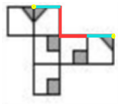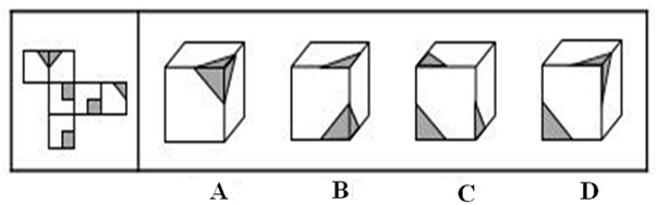 【解析】本题考查空间重构。 观察展开图,红色线条与蓝色线条折叠后是重合的,因此展开图中的三个灰色三角是共有一个顶点。