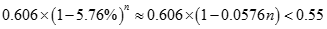 ,解得n=2,所以2011年万元GDP能耗可以0.55吨标准煤以下。因此,本题答案为A选项。