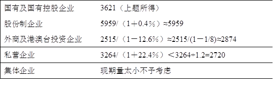 【解析】问题要求比重排名前三位,也就是占全国规模以上工业企业实现利润的大小,因为全国规模以上工业企业实现利润是一定的,所以直接比较各个经济类型的利润的大小即可。题目中要比较的是2011年的量,资料中是2012年的量,所以是基期量大小的比较。套用基期量公式得到: