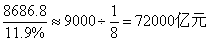 【解析】根据资料中的第六段,可知新产品出口额为8686.8亿元,占当年全部工业制成品出口额的11.9%,则所求问题为