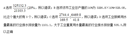 A.全市工业新鲜用水量超过工业废水排放量的20倍