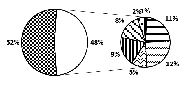 【解析】根据图表与选项对比,男性劳动力数量为4968,女性劳动力数量为4509,女性数量小于男性数量,故A区域代表的应为男性劳动力,D项排除。那么可得第二个饼形图应代表的为女性劳动力的年龄段数量分配,根据图表可知,各年龄段人数相对应的大小应为,B图5%对于第4名,C图9%对于第2名,D图8%对于第3名,从表格数据中对应得出的年龄段人群应为,B对应20~24岁女性劳动力,C对应35~44岁女性劳动力,D对应55~64岁女性劳动力。 故正确答案为A。