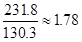 【解析】2008年,万元国内生产总值用水量231.8立方米,比上年下降7.9%,万元工业增加值用水量130.3立方米,下降7.0%。那么2008年我国万元国内生产总值用水量约是万元工业增加值用水量的倍数为: