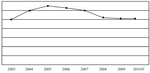 下图反映了2003~2010年该省城镇居民哪种主要耐用消费品每百户拥有量的变化趋势?