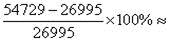 2003年移动电话年末用户为26995,2007年移动电话年末用户为54729,则2007年移动电话年末用户数的增长幅度
