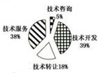 下列关于2006年技术开发、技术转让、技术咨询和技术服务等四类合同占全国成交金额比重的图形,描述正确的是()