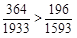 ,364超过了196的1.5倍,而1933不到1593的1.5倍,故可得出