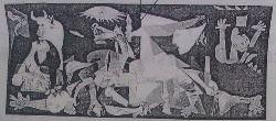 【解析】该幅画是西班牙画家毕加索的油画《格尔尼卡》,创作于20世纪30年代。此画结合立体主义、现实主义和超现实主义风格,旨在表现痛苦、受难和兽性:画中右边有一个妇女举手从着火的屋上掉下来,另一个妇女拖着畸形的腿冲向画中心;左边一个母亲与她已死的孩子;地上有一个战士的尸体,他一个断了的手上握着断剑,剑旁是一朵正在生长着的鲜花;画中央是一匹老马,为一根由上而下的长矛刺杀,左边有一头举首顾盼的站着的牛,牛头与马头之间是一只举头张喙的鸟;上边右面有一从窗口斜伸进的手臂,手中掌着一盏灯,发出强光,照耀着这个血腥的场面。故而本题D">