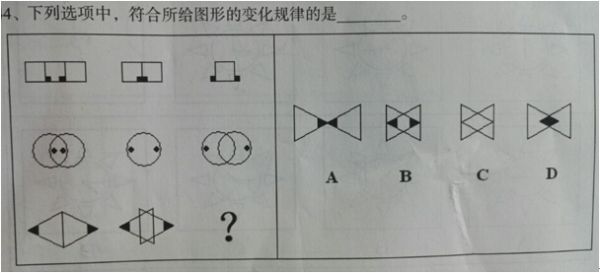 位置类平移。每行都有相同的元素组成,且两个元素相向而行步幅恒等。因此,本题答案为B选项。[2016年上海《行测》真题]