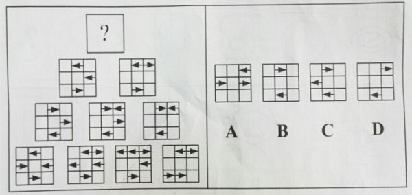 [2017增] A.如图A B.如图B C.如图C D.如图D 答案:B。 解析:样式规则运算。右下往上,每行相近的两个图形满足相同的规则运算得到上方图形,规则如下:左+左=右;右+右=左,其余相加都等于白。所以正确答案为B。[2016年上海《行测》真题]">
