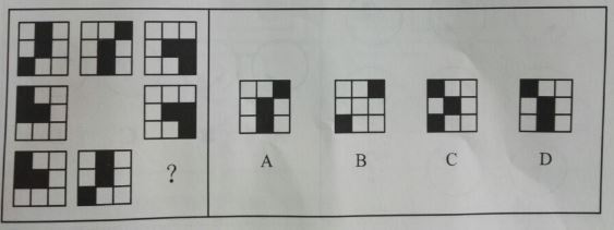 [2017增] A.如图A B.如图B C.如图C D.如图D 答案:A。 解析:解法一:位置类平移。整体顺时针去看,每个九宫格中间黑块不动,上方黑块每次顺时针移动一格,下方黑块每次逆时针移动一格。