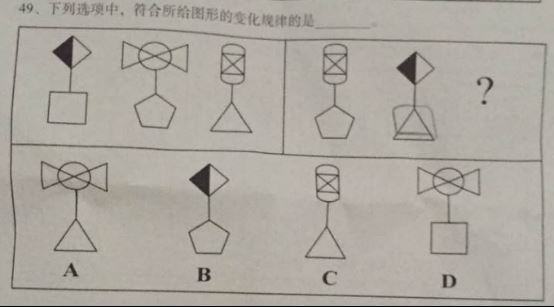[2017增] A.如图A B.如图B C.如图C D.如图D 答案:D。 解析:样式类遍历。第一组图形里的元素在第二组中都会出现一次,所以正确答案为D[2016年上海《行测》真题]">