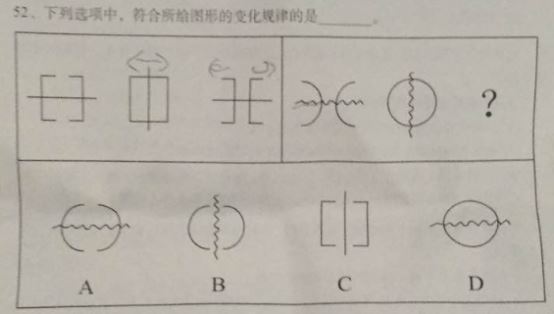 [2017增] A.如图A B.如图B C.如图C D.如图D 答案:A。 解析:第一组图形中间竖线每次旋转90度,左侧图形每次向右平移一个位置,右侧图形每次向左平移一个位置。第二组也遵循这一规律,所以正确答案为A。[2016年上海《行测》真题]">