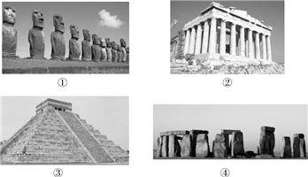 【解析】图1是智利的复活岛巨人阵,图2是希腊巴特农神庙,图3是墨西哥金字塔,图4是英国巨石阵。所以本题选D">