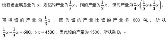 某有色金属公司四种主要有色金属总产量的1/5为铝,1/3为铜,镍的产量是铜和铝产量之和的1/4,而铅的产量比铝多600吨。问该公司铅的产量为多少吨?