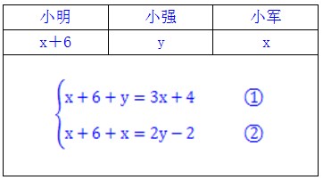 1)由“小明给小军3本,两人数量相等”可知,小明原来比小军多6本,设小军购买x本,小强购买y本,则: