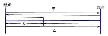 解法一:甲的速度比乙快,则甲、乙两船第二次迎面相遇时,两船共行驶了四个来回。如下图所示,设第二次相遇时,相遇地点离起点的距离为S米,则可得