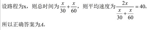 平均速度=2×30×60/(30+60)=40,故正确答案为A。