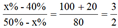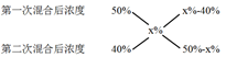 有100克溶液,第一次加入20克水,溶液的浓度变成50%;第二次再加入80克浓度为40%的同种溶液,则溶液的浓度变为( )