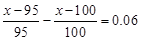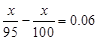 【解析】设该商品上月的进价为100,商品的售价为x,则该商品本月的进价为95,可得