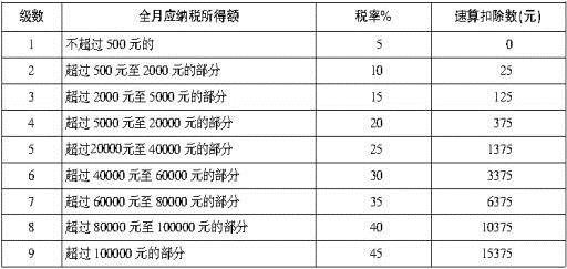 个人所得税税率表(工资、薪金所得适用)