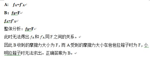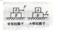 - B.无论是爸爸还是小明拉箱子,箱子B受到地面对它的摩擦力均为F