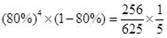 一个射击运动员的准确率是80%,那么他连续射击5次,有4次命中的概率是( )。