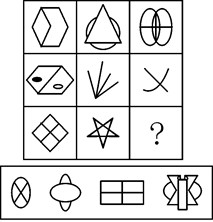 本题考查线段中的直线问题。在题干中,第1列图形从上到下直线的条数为:8、7、6;第2列图形从下到上直线的条数为:5,4,3;第3列从上到下直线的条数为:2,1,所以“?”处直线的条数为0。因此,本题答案为B选项。
