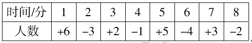 下表是“人人乐”超市某日早上开始营业后8分钟内对顾客进出超市情况的记录,其中正数表示进入,负数表示走出: