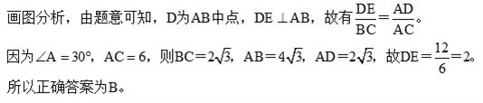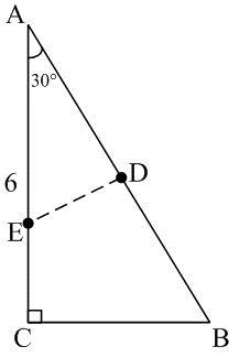 在三角形纸片ABC中,∠C=90°,∠A=30°,AC=6,折叠该纸片,使点A与点B重合,折痕与AB、AC分别交于D、E,折痕DE的长度是( )