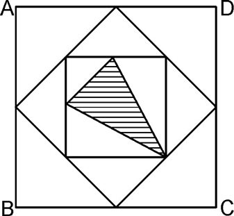 A.5/28 B.7/34 C.3/32 D.5/38 答案:C。 解析:连接正方形4个中点得到的小正方形的面积是大正方形的1/2,因为连接小正方形的对角线,这两条对角线把大正方形分成相等4部分,每部分的一半一起构成了小正方形。因此,中间的最小正方形的面积是1/4.求阴影部分的面积,可以求出最小正方形中非阴影部分,容易得出为最小正方形的5/8.所以阴影部分为最小正方形的3/8,(3/8)x(1/4)=3/32.本题答案为C选项。">