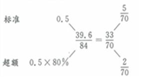 由于总用电为84度,所以标准、超额分别为60、24度。
