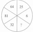 从6开始,各数逆时针排列构成数列:6,25,64,81,32,( )。数列构成幂规律数列: