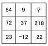 A.106 B.166 C.176 D.186 答案:D。 解析:沿行的方向看:(72+37)×2=218,[23+(-12)]×2=22。因此?=(84+9)×2=186。">