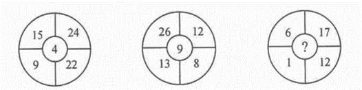 ( ) A.12 B.6 C.2 D.0 答案:D。 解析:该数列的规律是(15-9)-(24-22)=4,(26-13)-(12-8)-9。故问号处应为(61)(17-12)=0.">